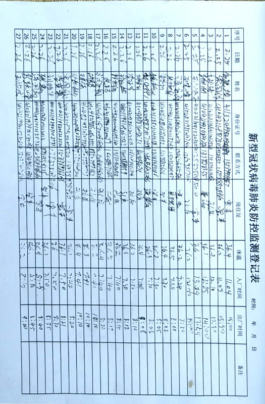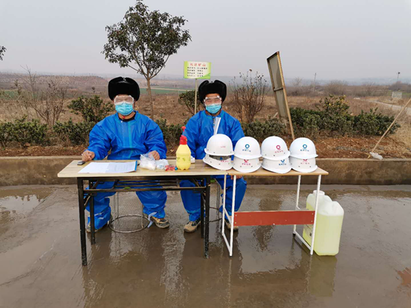 (3)體溫篩查。每天對當班人員進行兩次體溫篩查,上班前、下班前各一次,填寫記錄臺賬,并報送疫情防控領導小組。 (4)佩戴口罩。要求在崗員工必須主動佩戴口罩,掌握正確佩戴口罩的方法,隊伍不佩戴口罩人員,一律禁止進入辦公及生產場所,并進行嚴肅處理。 (5)分散就餐。返崗人員施行分散就餐,錯峰就餐制,嚴禁在食堂集中就餐。餐廳工作人員施行封閉式管理,吃住在生活區,并安排專人到縣防控指揮部制定超市采購米、面、油、蔬菜等食材。 (6)開窗通風。辦公場所、生產車間、食堂等公共場所保持開窗通風,并對空調進行消毒。 (7)嚴格防疫物資領用。防疫物資根據按需領取的原則,嚴禁浪費。領用人按制度規定填寫領用臺賬。  (8)設立臨時隔離室。寶豐分公司在礦山上設立意見臨時隔離室,用于臨時出現發熱異常狀況的人員進行隔離。  (9)減產集聚。停止員工非必要集聚,盡量采取視頻會議、微信、電話等交流形式,最大限度減少集聚性的室內活動。 (10)加強外來人員管理。對非本單位來訪人員從嚴控制,原則上不予入內。確有來訪需求人員,須出示工作證或介紹信等有效證明,并由接訪人員派專人接待,并對來訪人員進行提問篩查,詳細登記個人信息。